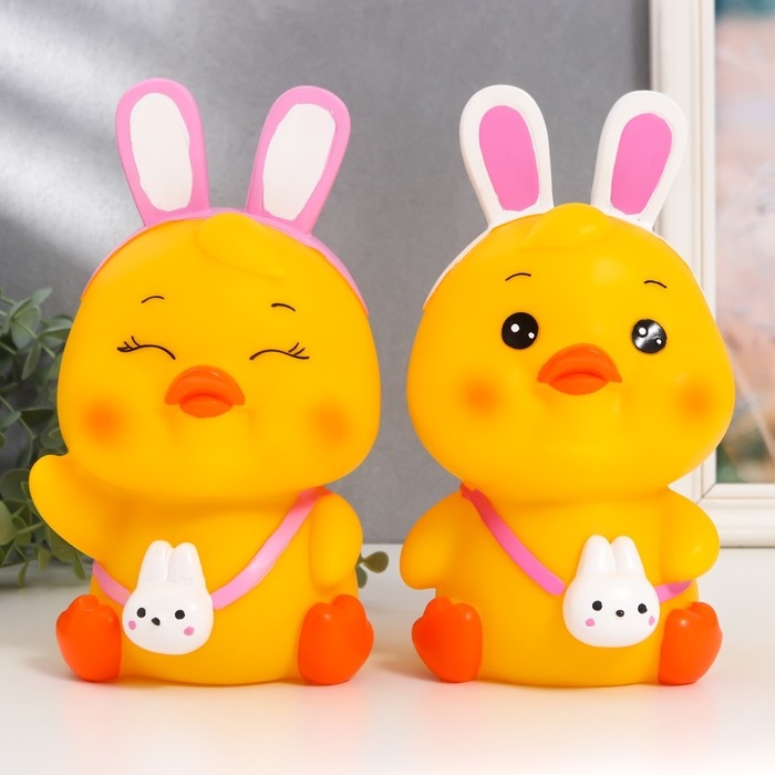 Копилка пластик "Уточка с заячьими ушками" МИКС 13х13х23 см