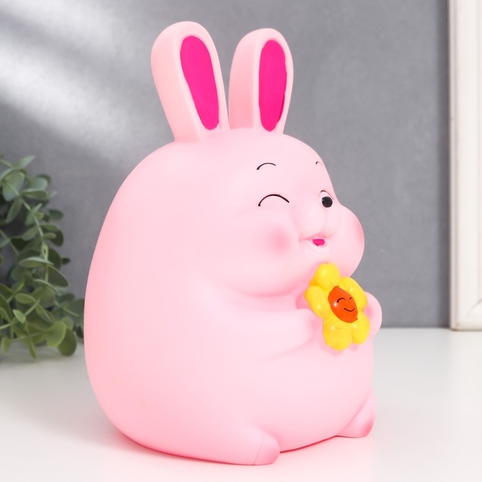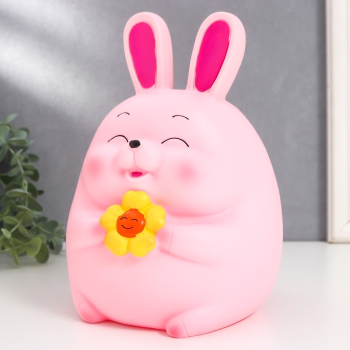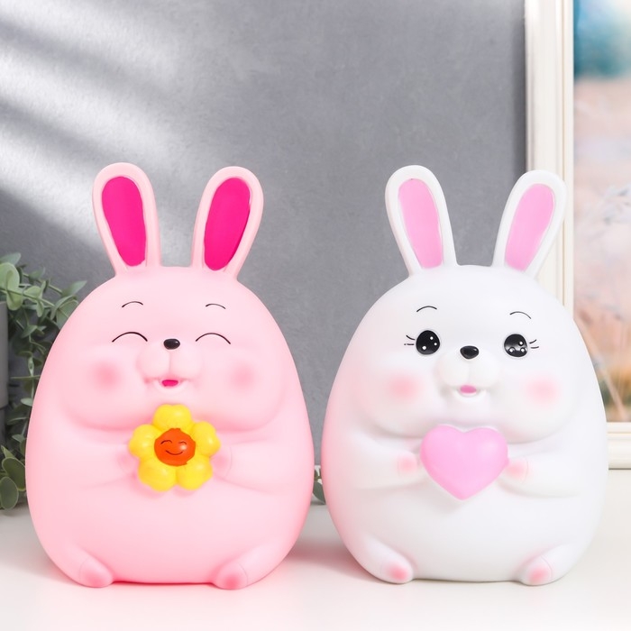 Копилка пластик "Зайчик - пухляш с сердцем/цветком" МИКС 16х15,5х23 см