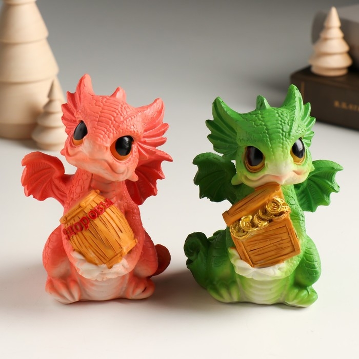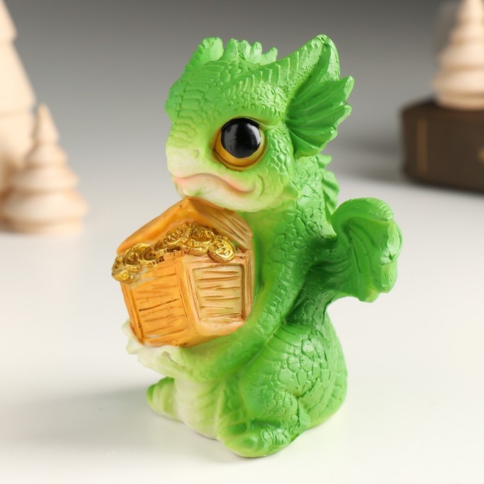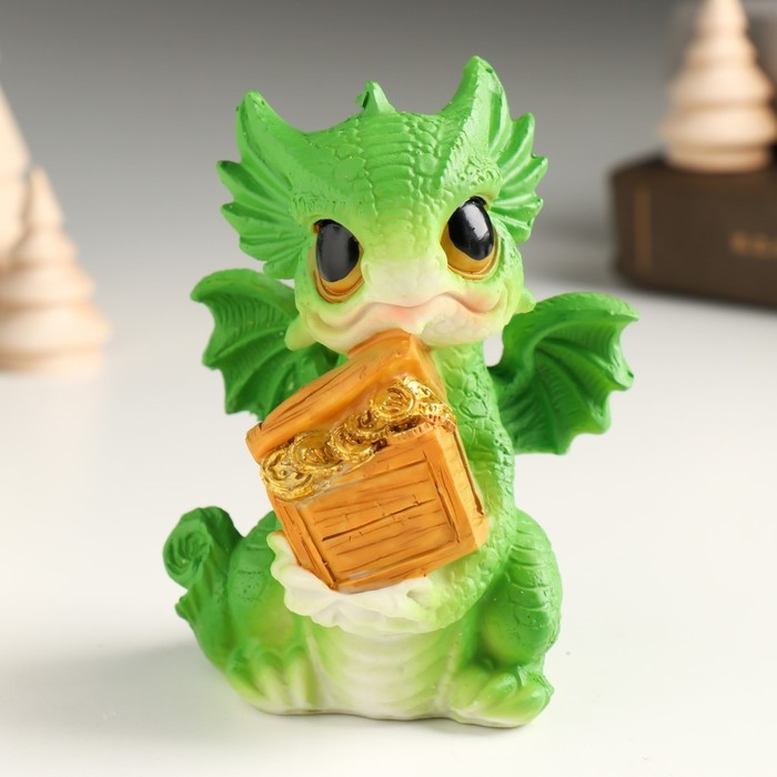 Копилка полистоун "Дракоша с большими глазами с бочкой/сундуком" МИКС 7х7х10,5 см