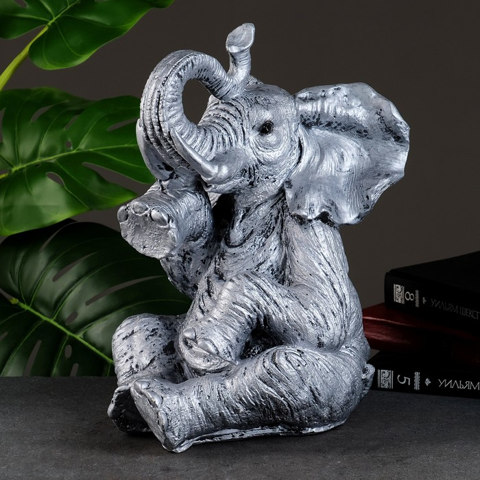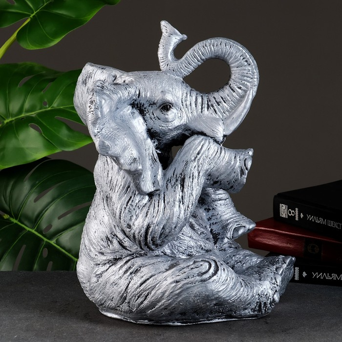 Копилка "Слон сидя" серебро, 37х24х29см