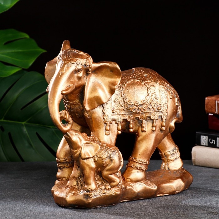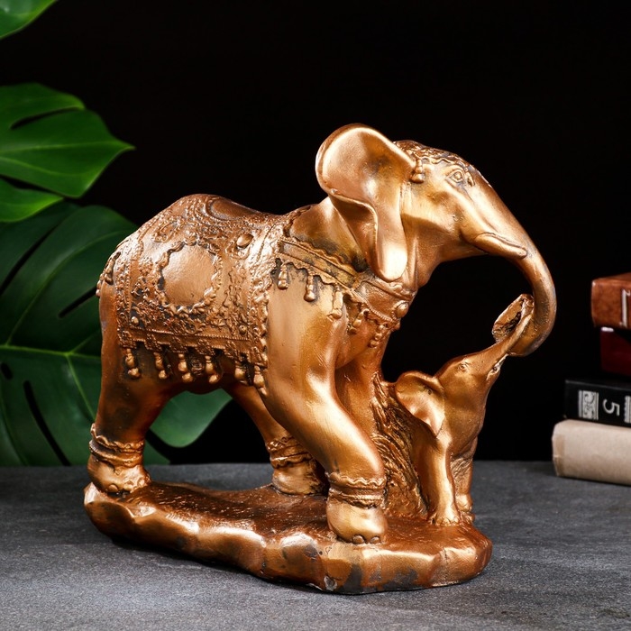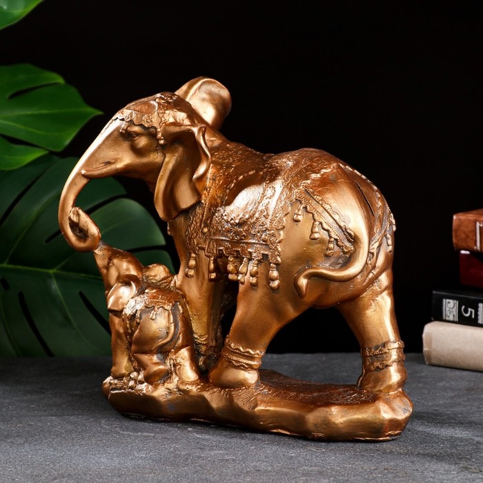 Копилка "Слон со слоненком" бронза, 15х27см