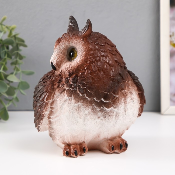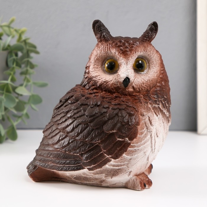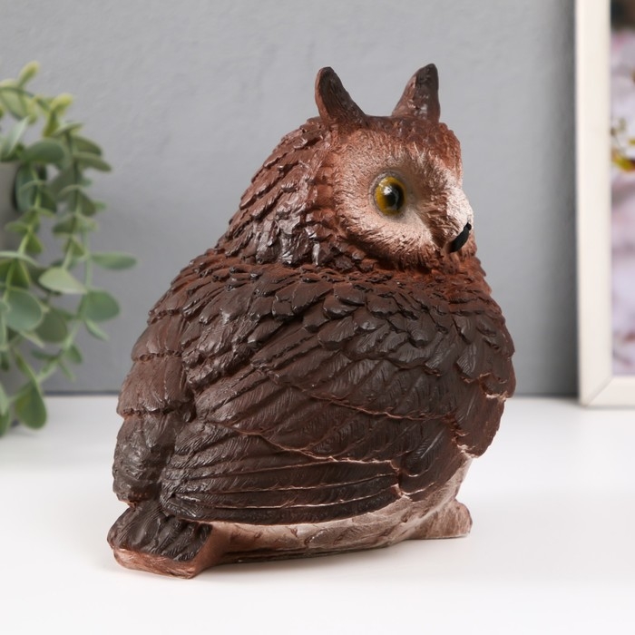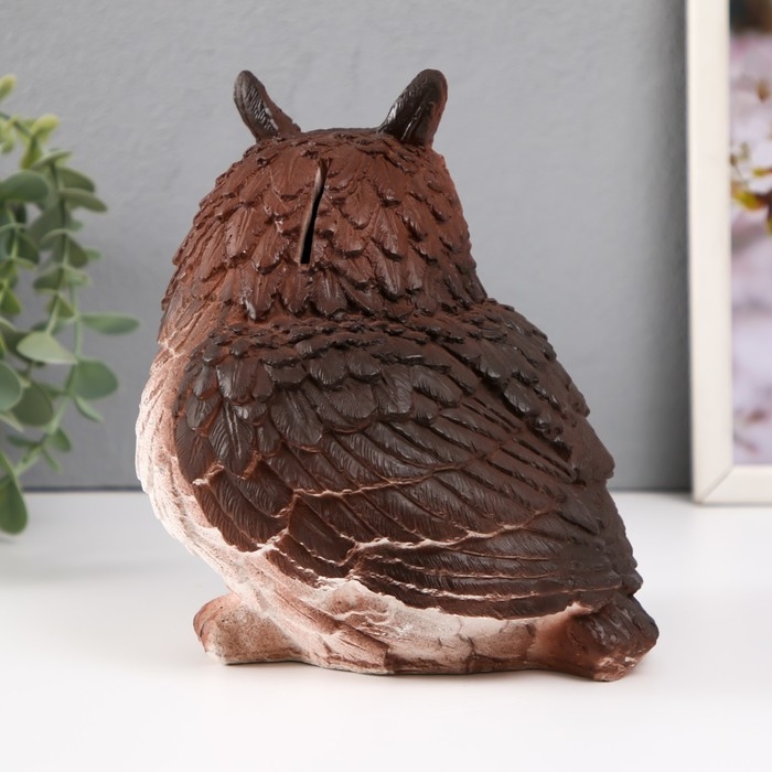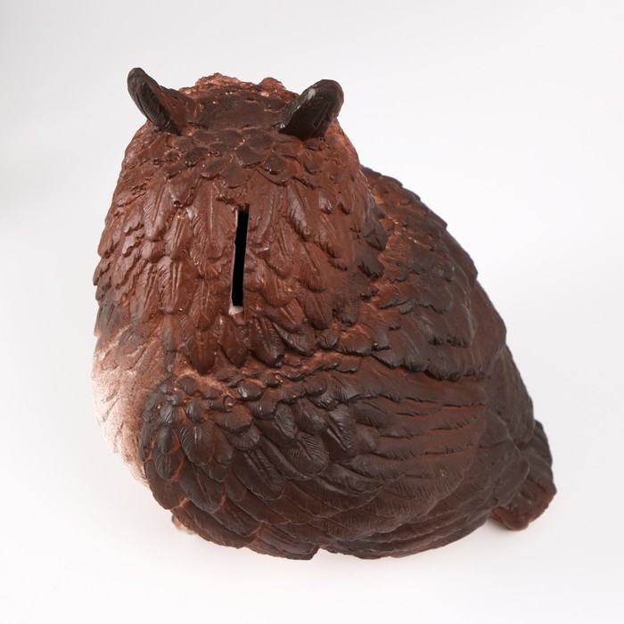 Копилка "Сова с ушками коричневая" Высота 18 см, ширина 15 см, длина 16 см.