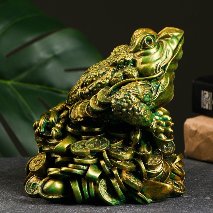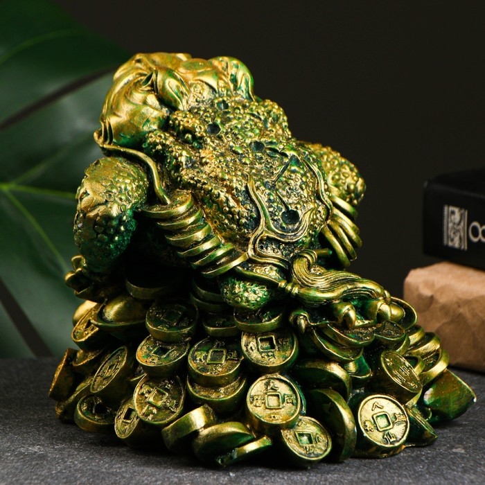 Копилка "Жаба на деньгах" зеленая с позолотой, 15х15х15см