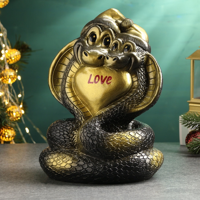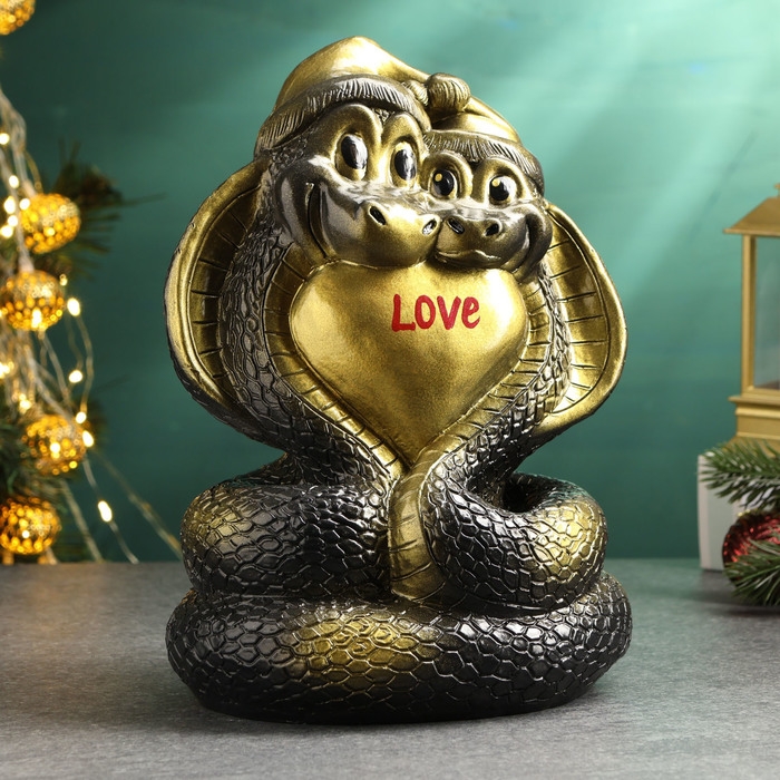 Копилка "Змеи с сердцем" черная-золото, 24см