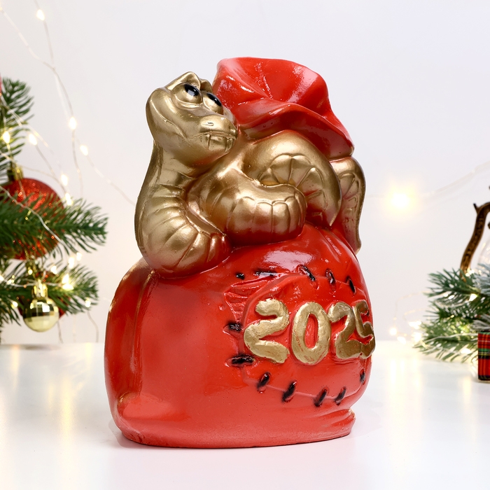 Копилка "Змея 2025 на мешочке" золотая, 23х16см