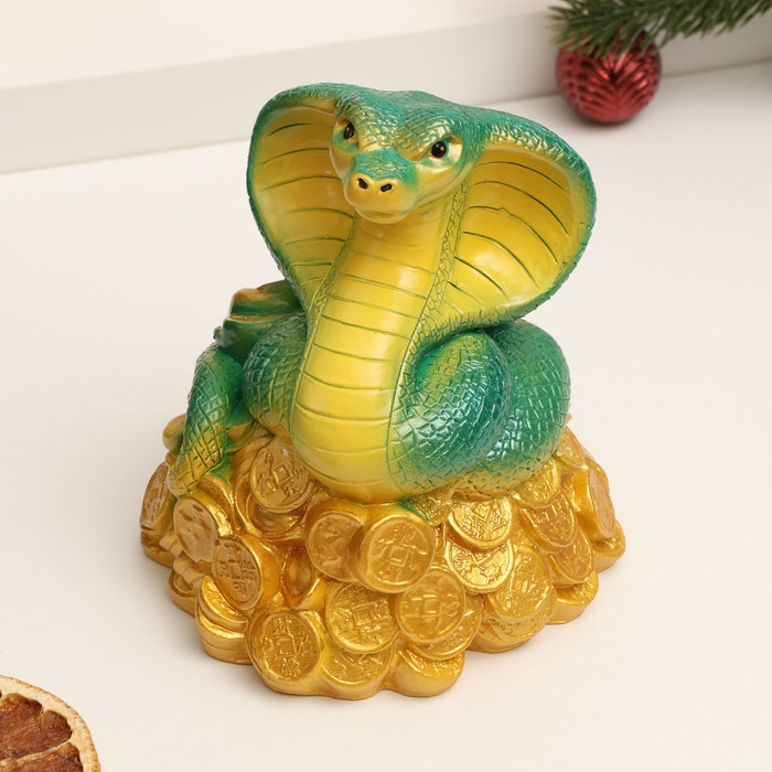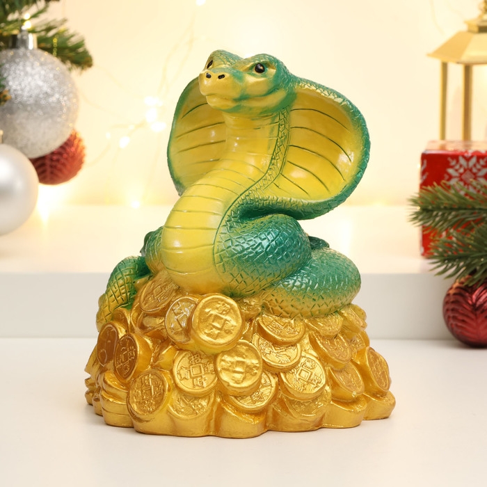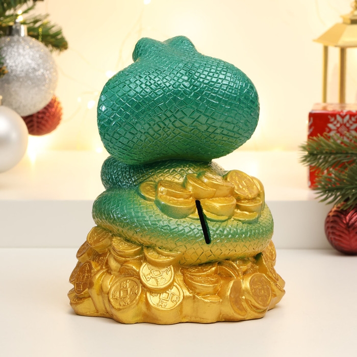 Копилка "Змея на деньгах" зеленая, 16см