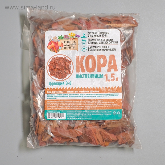 В заключение, кора лиственницы торговой марки ""Рецепты Дедушки Никиты"" является натуральным и эффективным субстратом для мульчирования почвы. Ее использование позволяет улучшить почву, защитить растения и создать здоровую экосистему в саду или на участке.