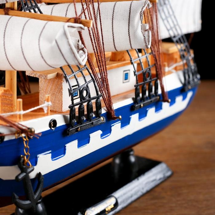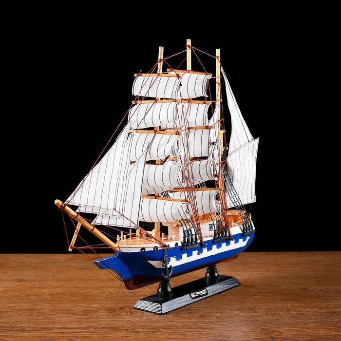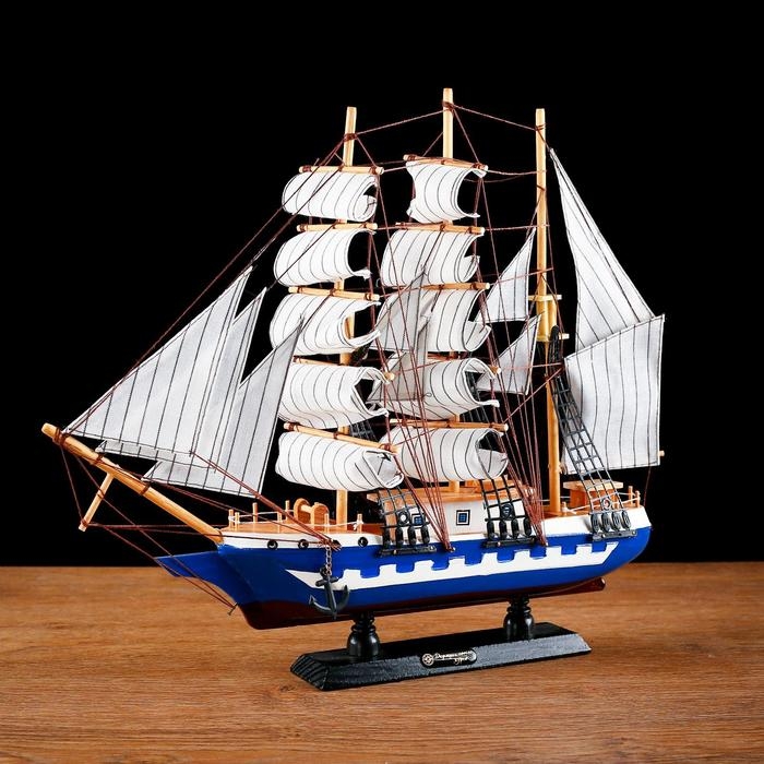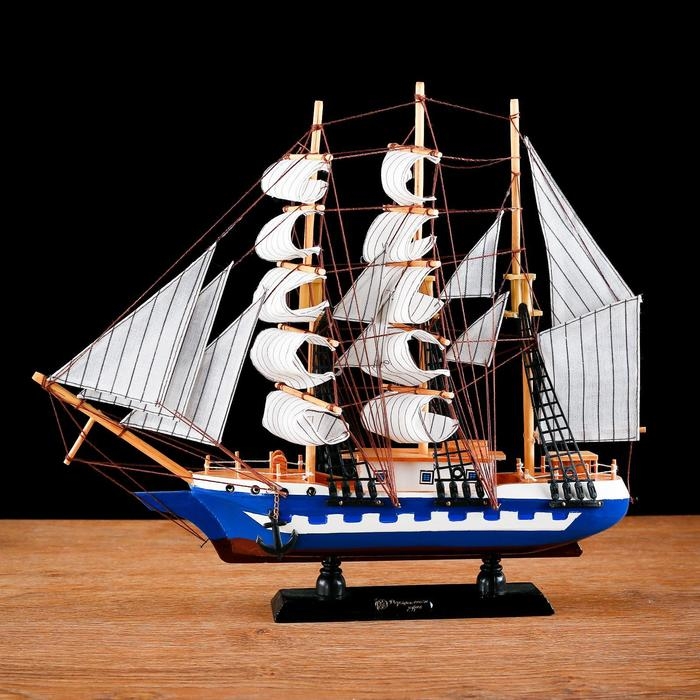 Корабль сувенирный средний «Корсика», борта синие с белой полосой, паруса белые, 43х8,5х37 см