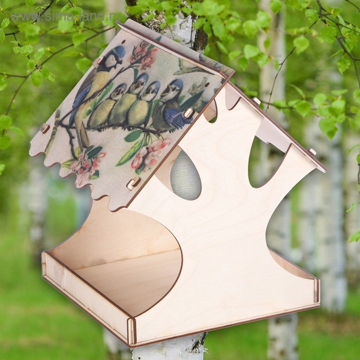 Кормушка для птиц "Птичка и птенцы", с принтом, 24×24×27 см