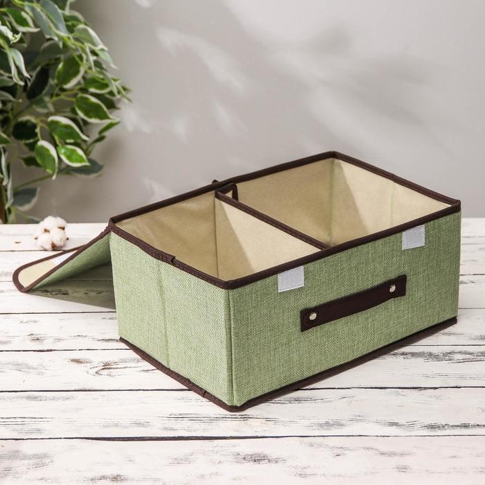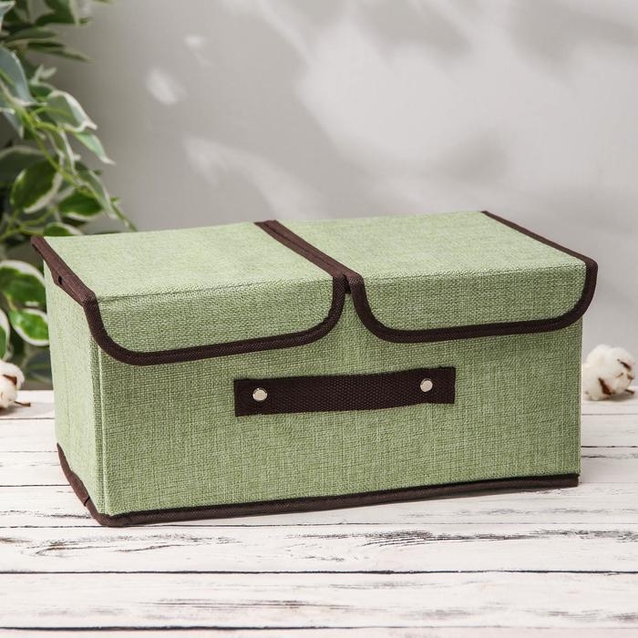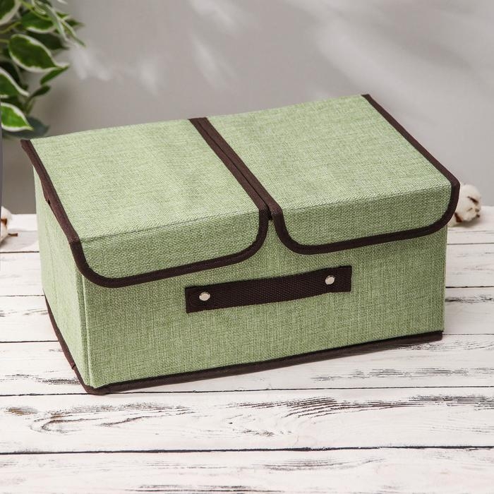 Короб стеллажный для хранения с двойной крышкой «Тэри», 36×25×16 см, цвет зелёный