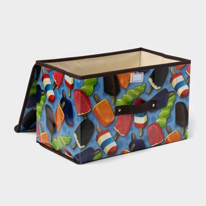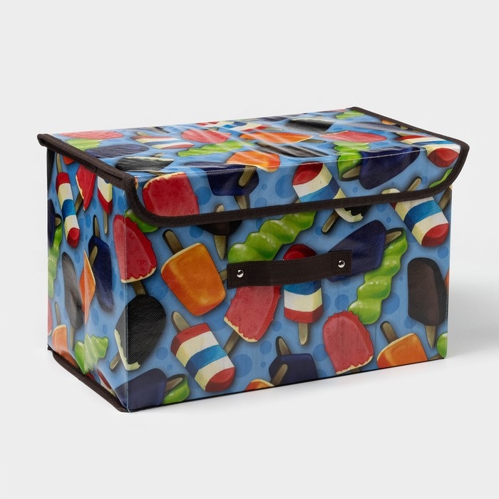 Короб стеллажный для хранения с крышкой «Эскимо», 38,5×25×24,5 см, цвет синий