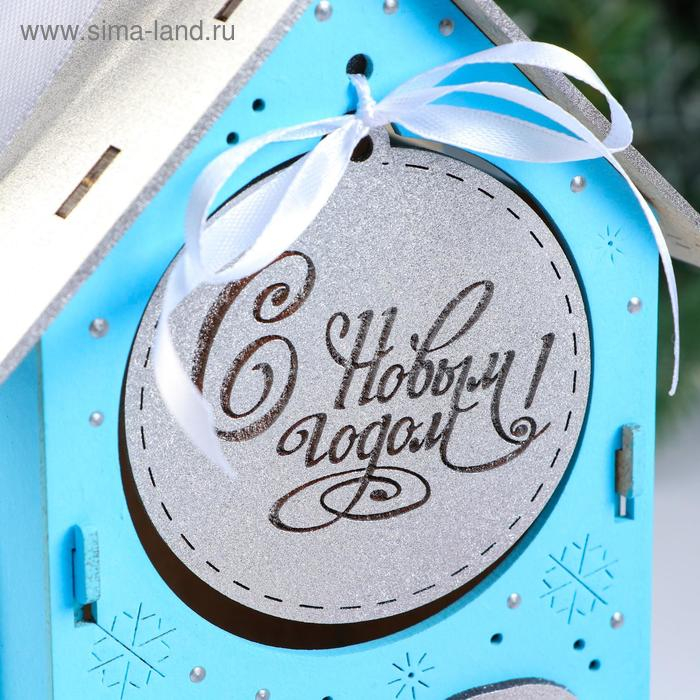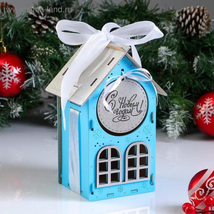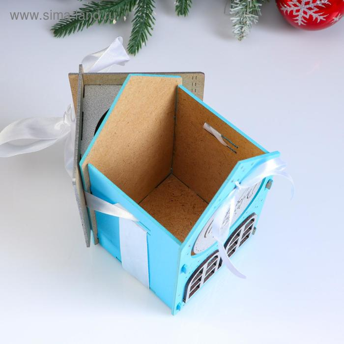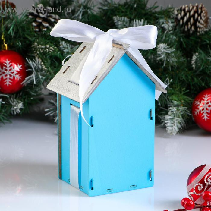 Коробка деревянная, 13.5×11.5×21 см "Новогодняя. Домик", подарочная упаковка, синий