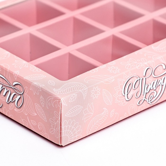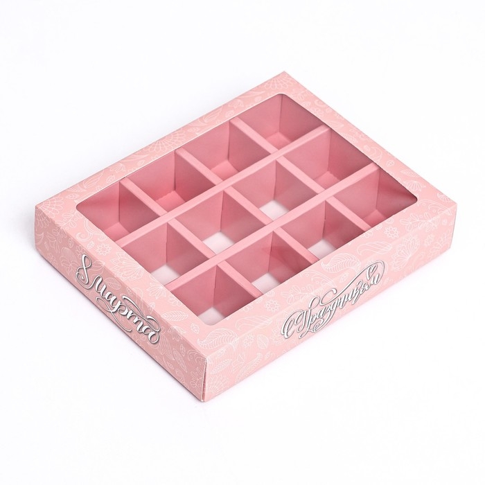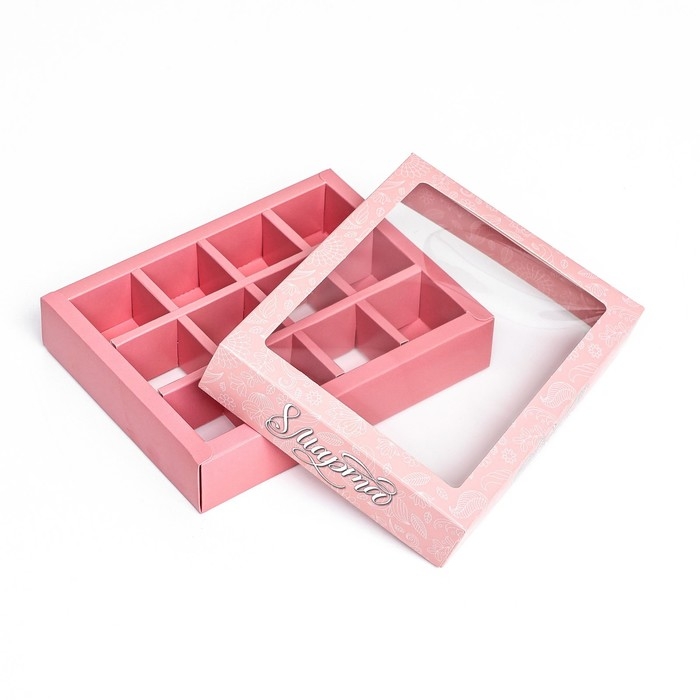 Коробка под 9 конфет с ячейками «Стильный розовый» 14,5 х 14,5 х 3,5 см, Новый год