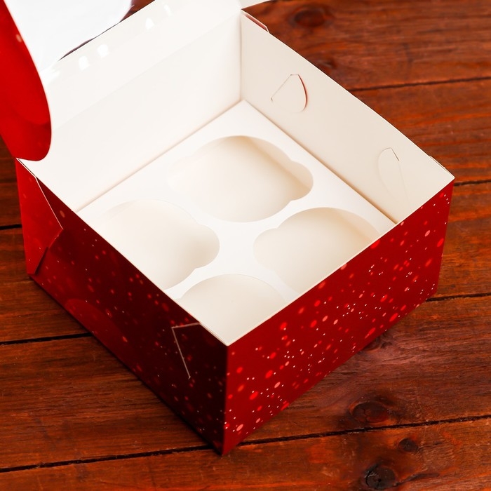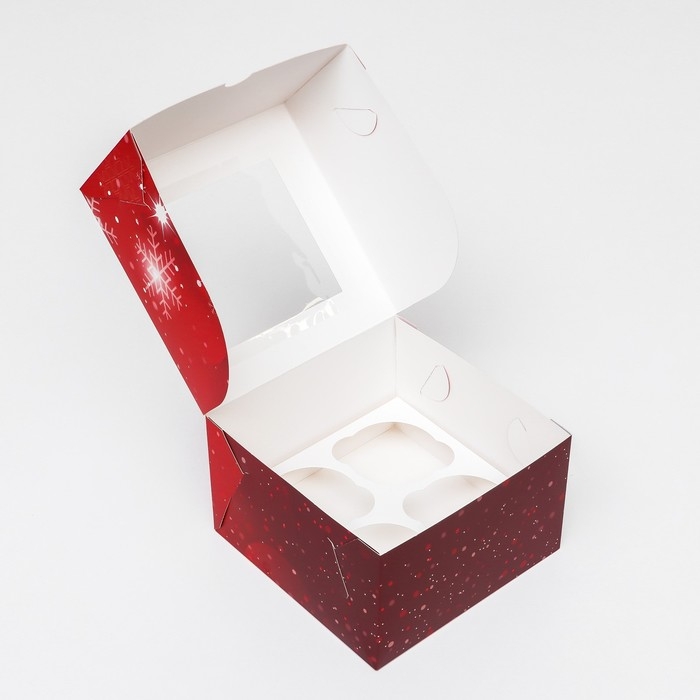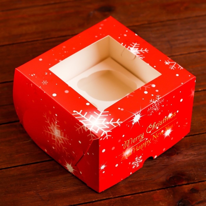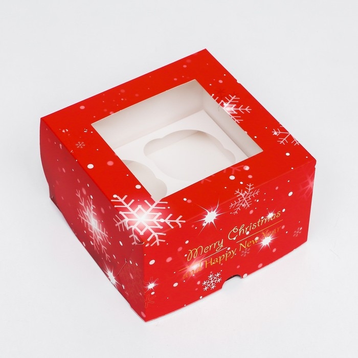 Коробка для 4 капкейка с окном "С Праздником!", 16 х 16 х 10 см, упаковка, Новый год