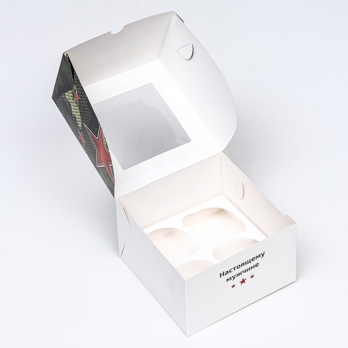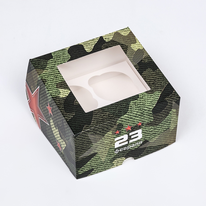 Коробка для 4 капкейков с окном , "Камуфляж", 16 х 16 х 10 см