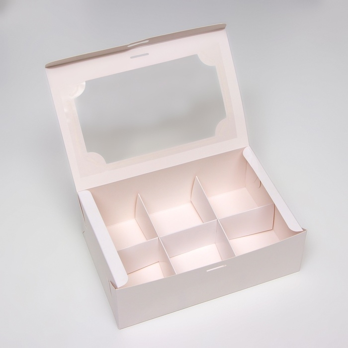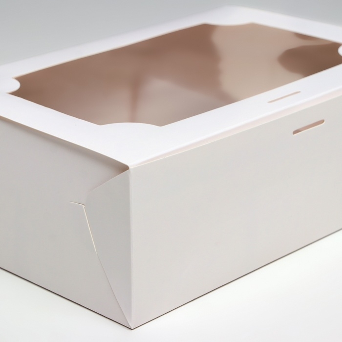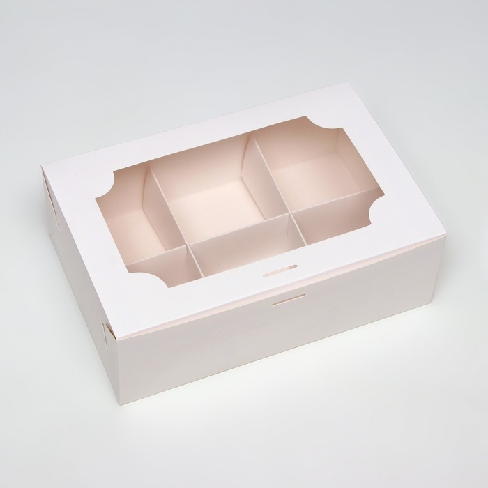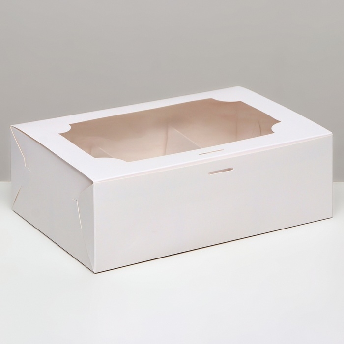 Коробка на 6 капкейков с окном, белая, 25 х 17 х 10 см