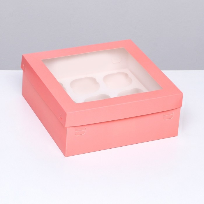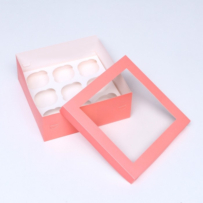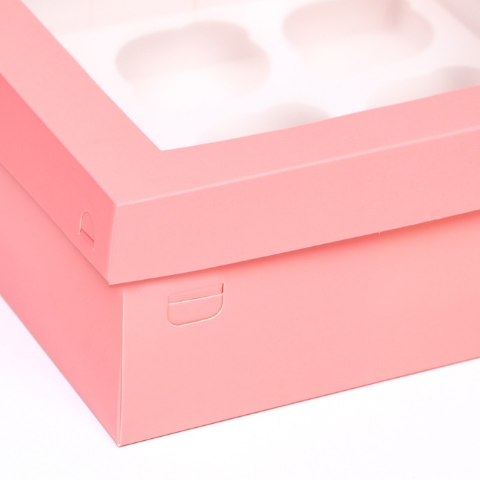Коробка для 9 капкейков с окном, розовая, 25 х 25 х 10 см