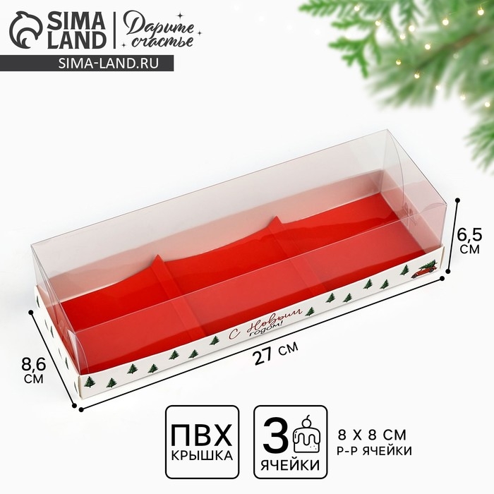 Коробка для для муссовых пирожных «С Новым годом», ёлочки, 27 х 8.6 х 6.5 см, Новый год