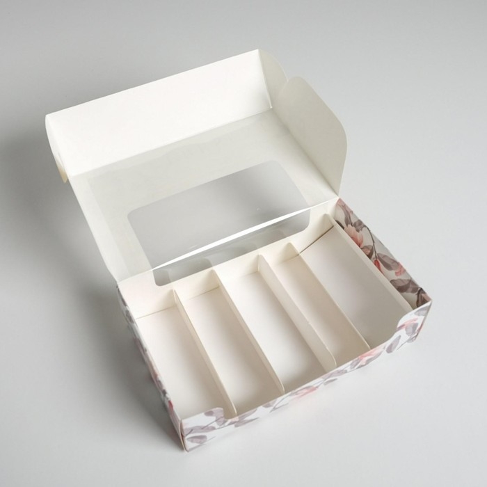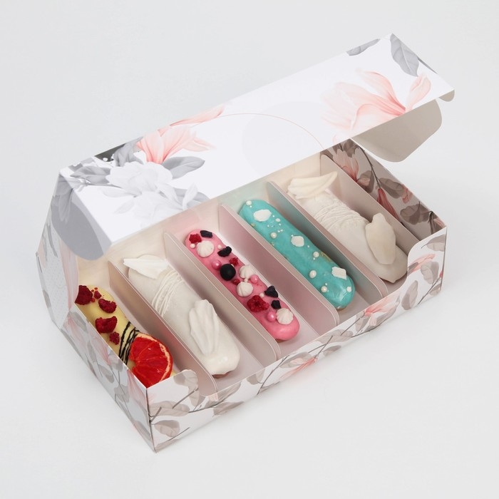 Коробка для эклеров, кондитерская упаковка, 4 вкладыша, «Фиалки», 20 х 15 х 5 см