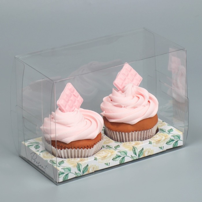 Коробка для капкейка, кондитерская упаковка, 2 ячейки «Розы», 16 х 8 х 11.5 см