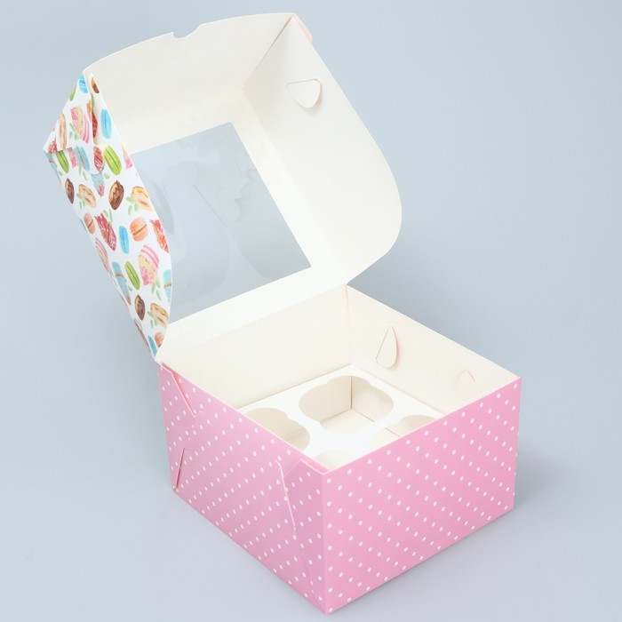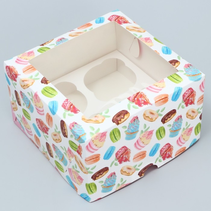 Коробка для капкейка, кондитерская упаковка, 4 ячейки «Сладости», 16 х 16 х 10 см