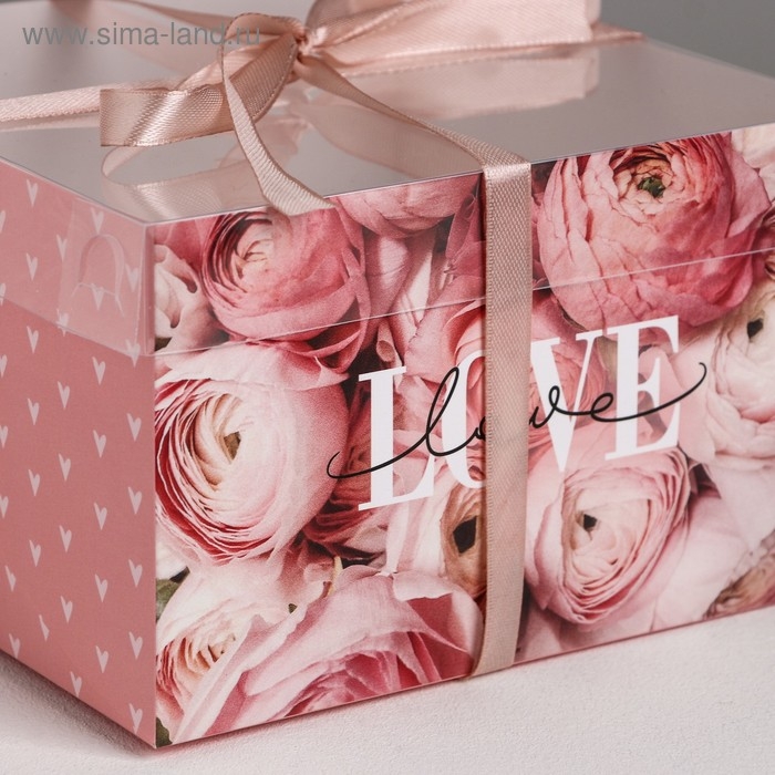 Коробка для капкейков, кондитерская упаковка, 4 ячейки «LOVE», 16 х 16 х 10 см