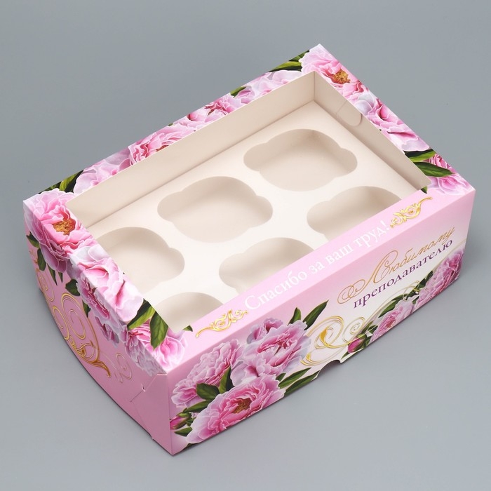 Коробка для капкейков, кондитерская упаковка с окном, 6 ячеек «Любимому преподавателю» 25 х 17 х 10 см