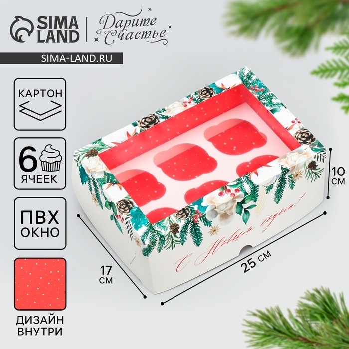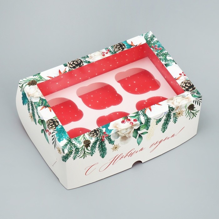 Коробка для капкейков «С Новым Годом!» 10 х 16 х 10 см, Новый год