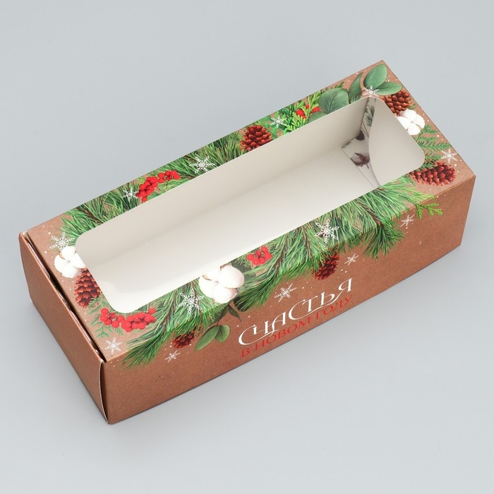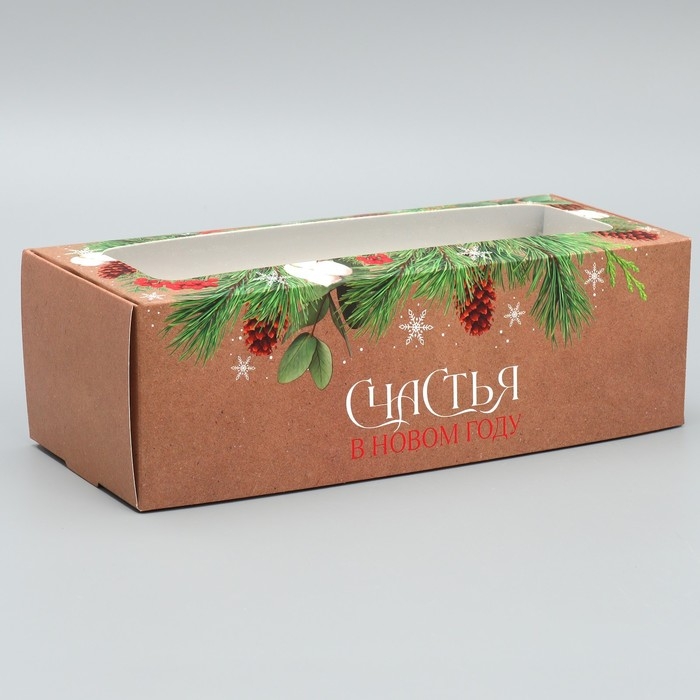Коробка для кондитерских изделий с окном «Счастья в новом году», 26 х 10 х 8 см, Новый год