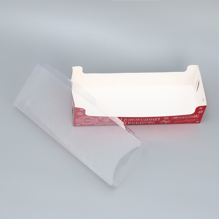 Коробка для кондитерских изделий с пластиковой крышкой «Новогодний подарок», 30 х 8 х 11 см, Новый год