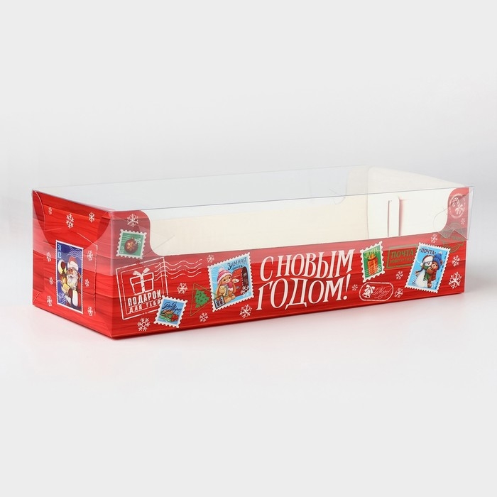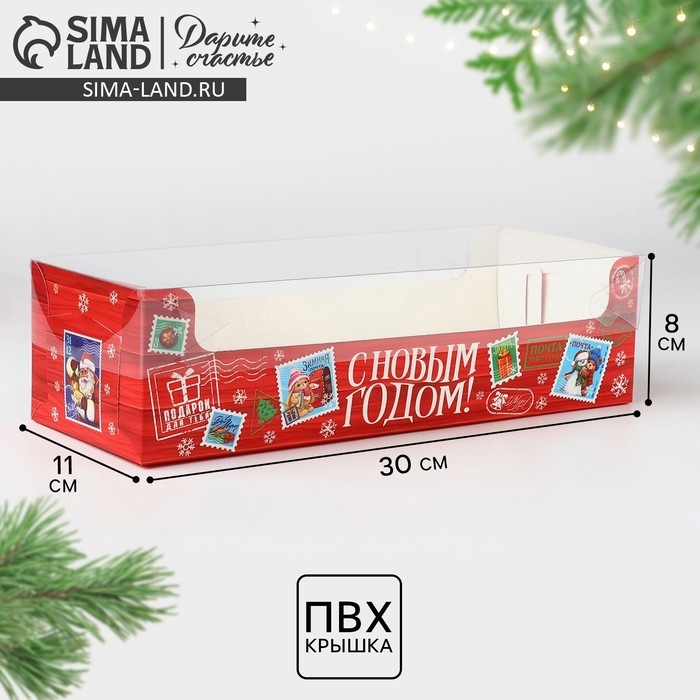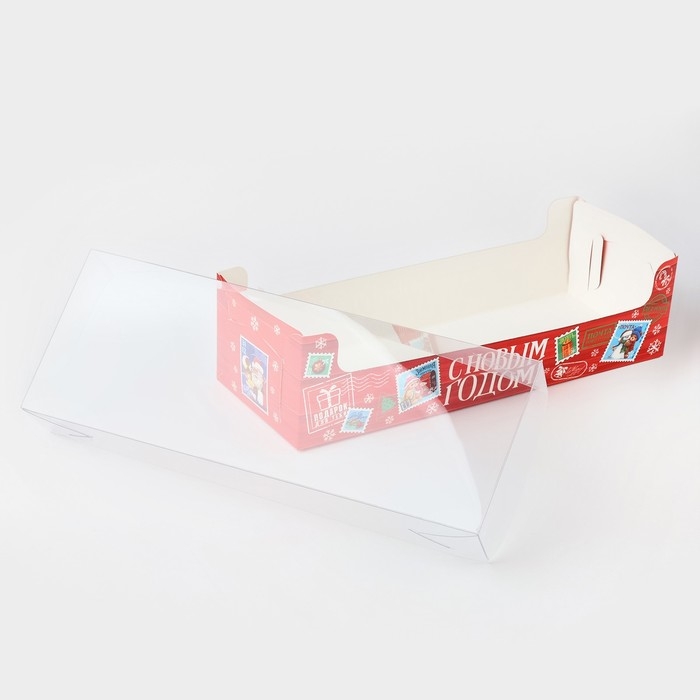 Коробка для кондитерских изделий с пластиковой крышкой «Почта», 30 х 8 х 11 см, Новый год