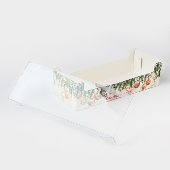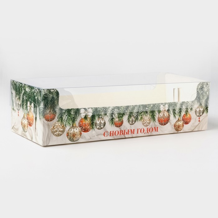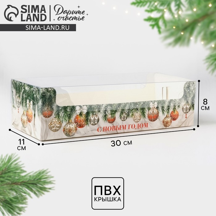 Коробка для кондитерских изделий с пластиковой крышкой «Роскошь», 30 х 8 х 11 см, Новый год