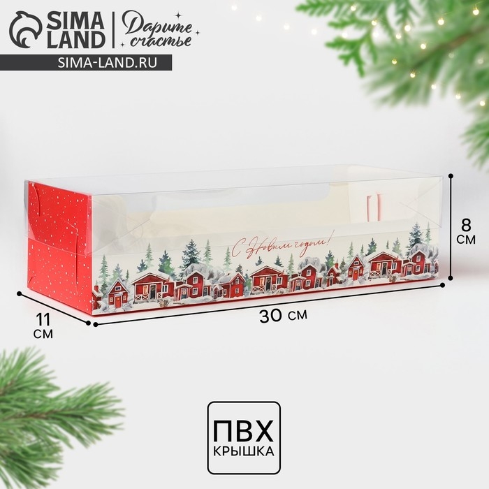 Коробка для кондитерских изделий с пластиковой крышкой «Сказка в городе», 30 х 8 х 11 см, Новый год