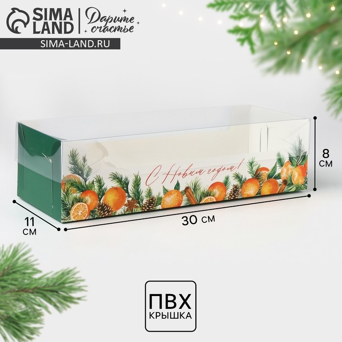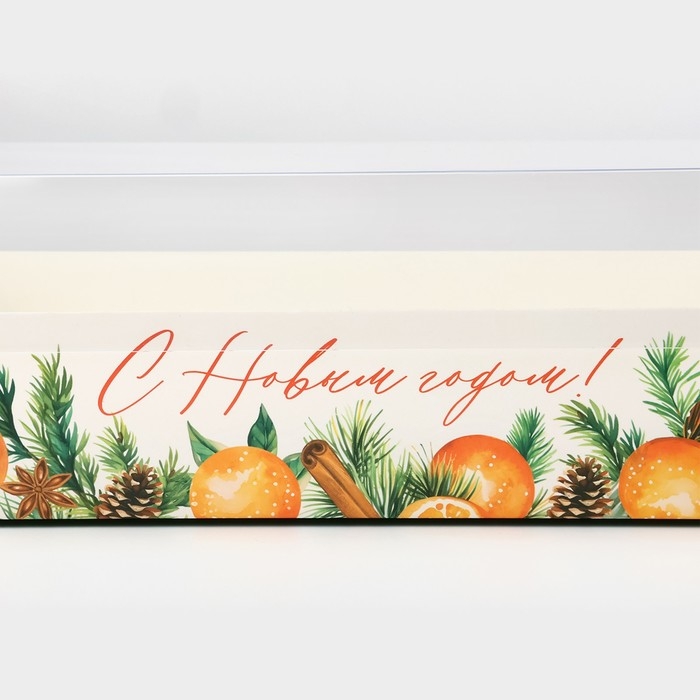 Коробка для кондитерских изделий с пластиковой крышкой «Тепла и Уюта», 30 х 8 х 11 см, Новый год