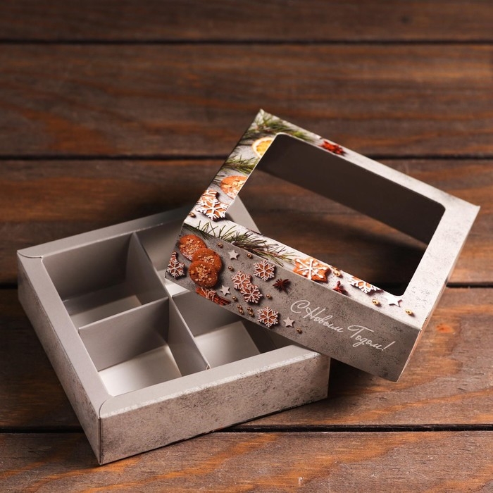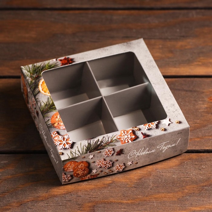 Коробка для конфет 4 шт "Пряный", 12,6 х 12,6 х 3,5 см
