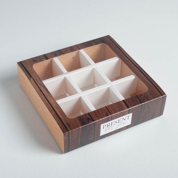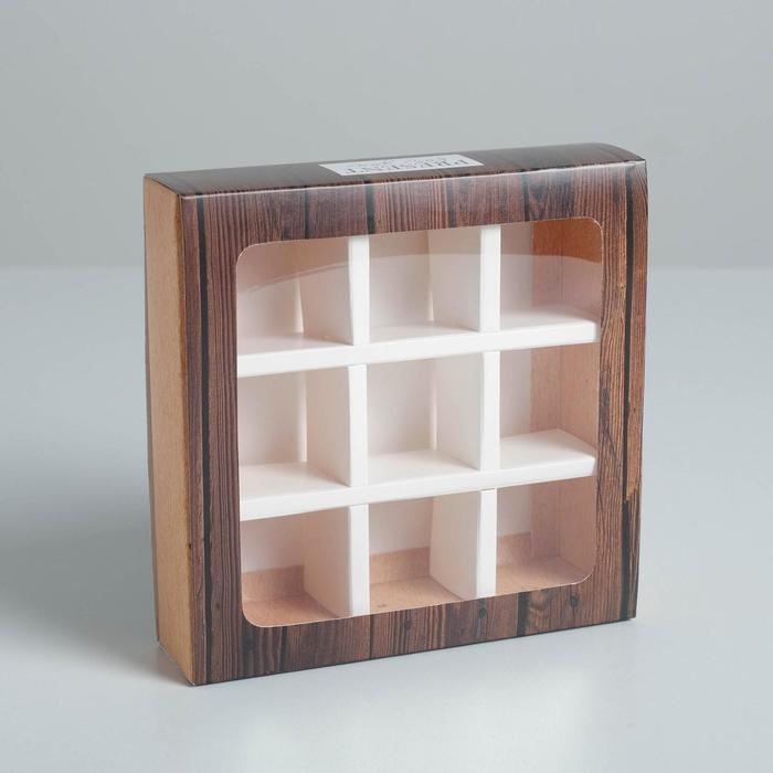 Коробка для конфет, кондитерская упаковка, 9 ячеек, «Дерево» 14.5 х 14.5 х 3.5 см