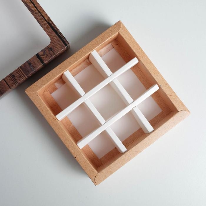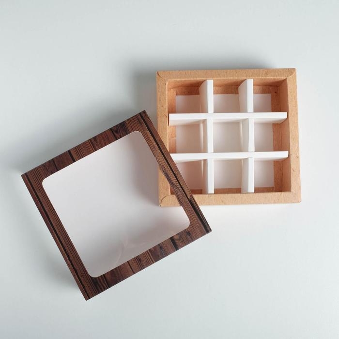 Упаковка для конфет, крафт, на 9 шт, 13,5 х 13,5 х 3,2 см
