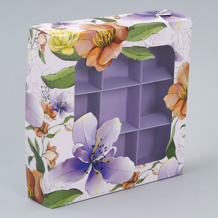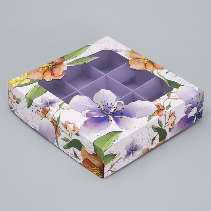 Коробка под 8 конфет и шоколад с ячейками, кондитерская упаковка, «Флюид» 18 х 18 х 4 см