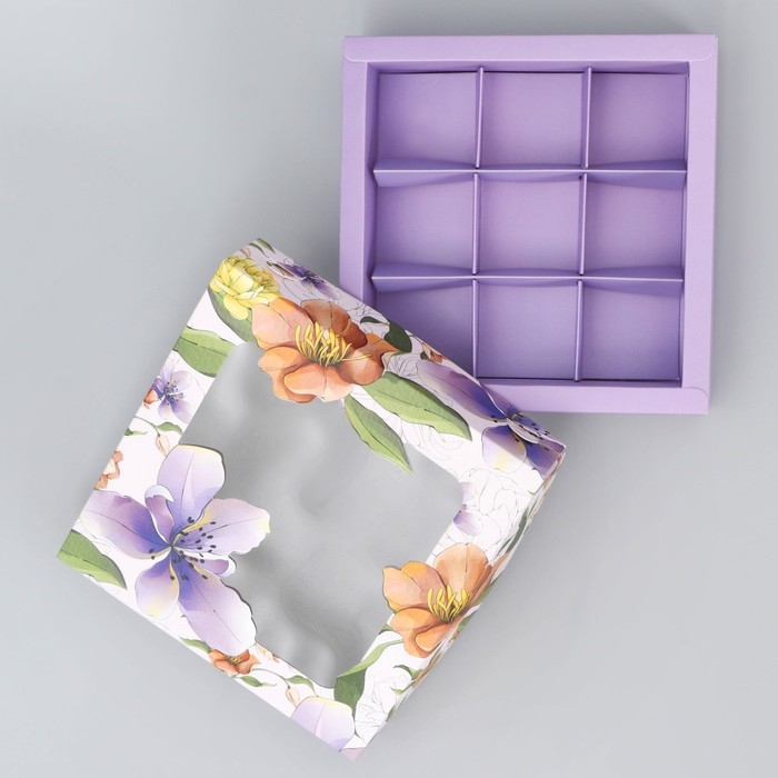Коробка под 9 конфет с обечайкой, сиреневый, 14,5 х 14,5 х 3,5 см
