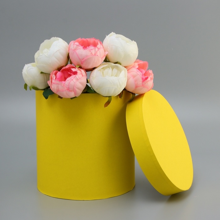 Подарочная круглая коробка-тубус (23x23x23 см) — идеальный выбор для оформления букетов и подарков.