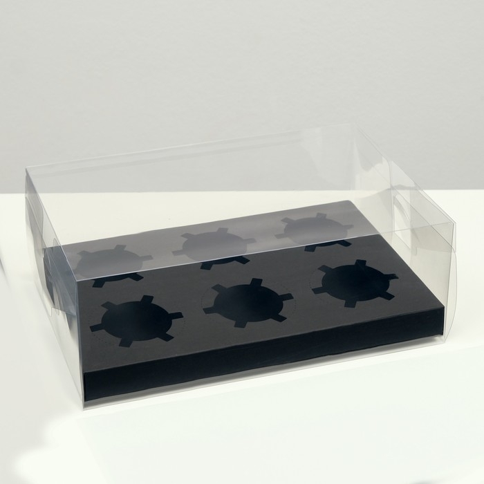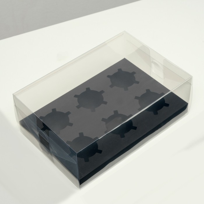 Коробка на 6 капкейков, черная, 26,8 × 18,2 × 10 см