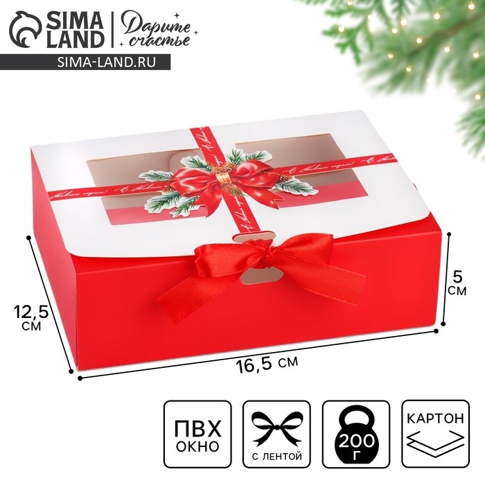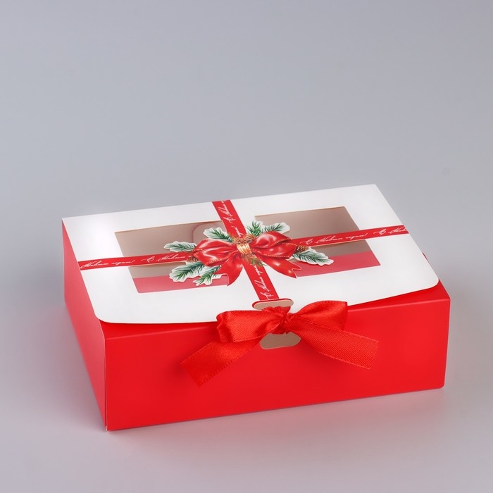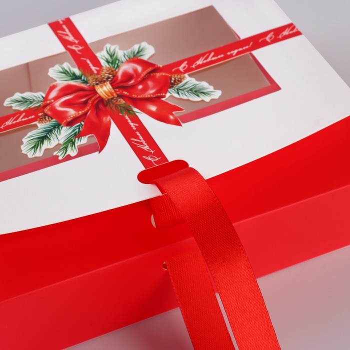 Коробка новогодняя складная «Бант новогодний» 16.5 х 12.5 х 5 см, Новый год