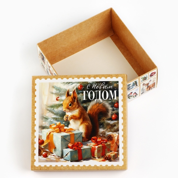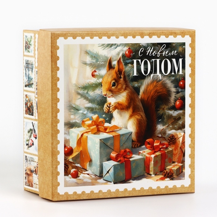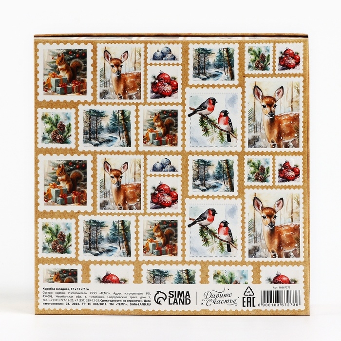 Коробка новогодняя складная «Ретро», 17 х 17 х 7 см, Новый год
