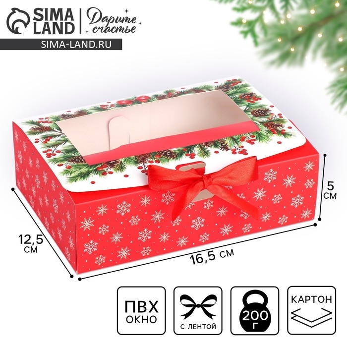 Коробка новогодняя складная «Счастливого нового года» 16.5 х 12.5 х 5 см, Новый год