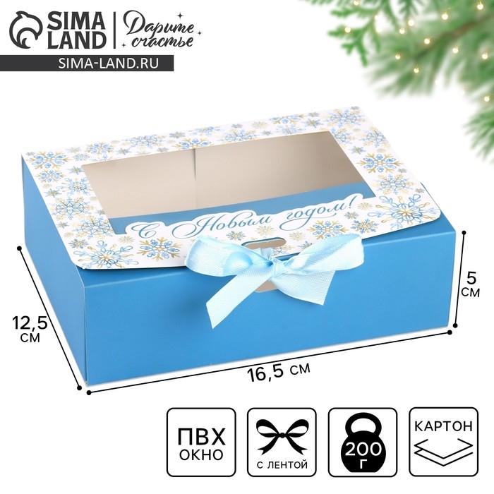 Коробка новогодняя складная «Снежинки» 16.5 х 12.5 х 5 см, Новый год