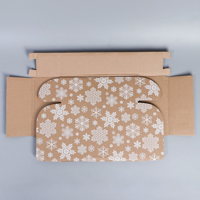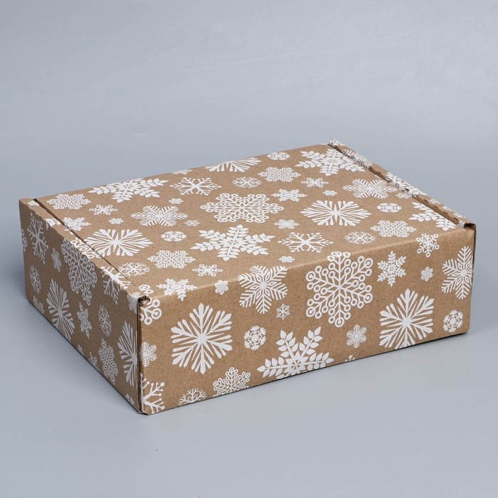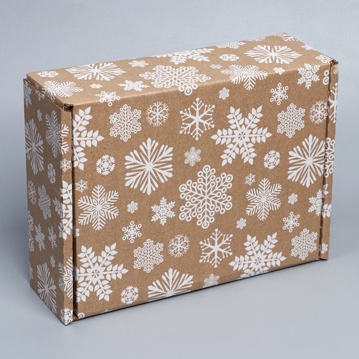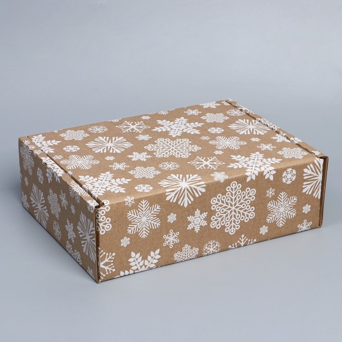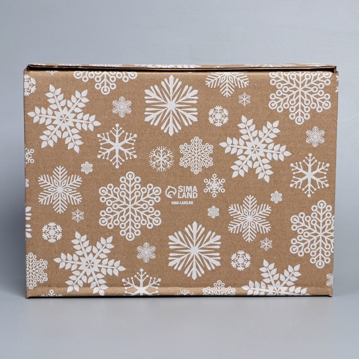 Коробка новогодняя складная «Снежинки», бурый, 27 х 21 х 9 см, Новый год
