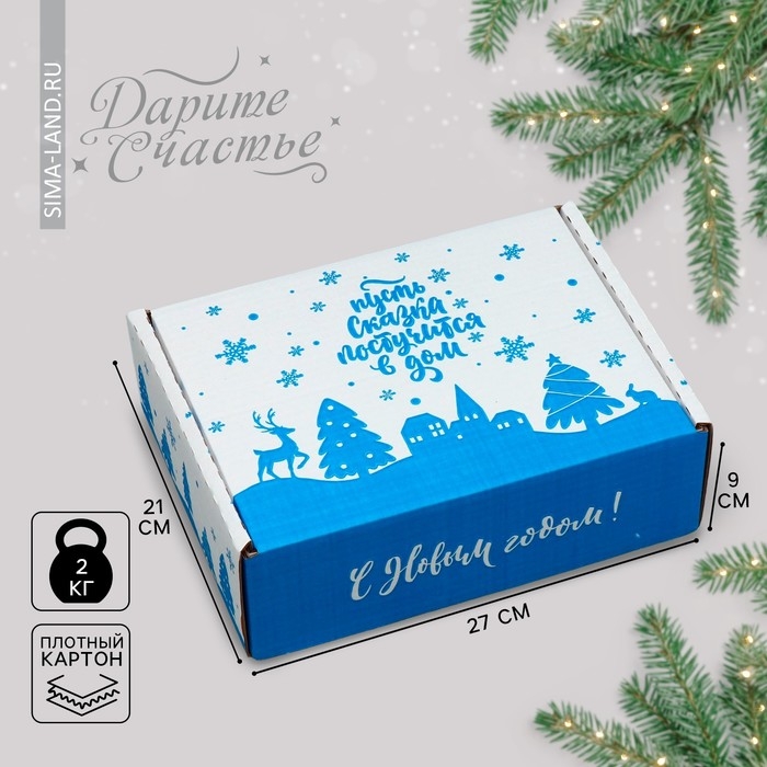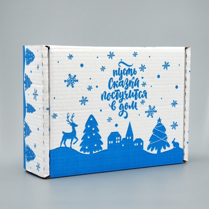 Коробка новогодняя складная «Снежный город», белый, 27 х 21 х 9 см, Новый год
