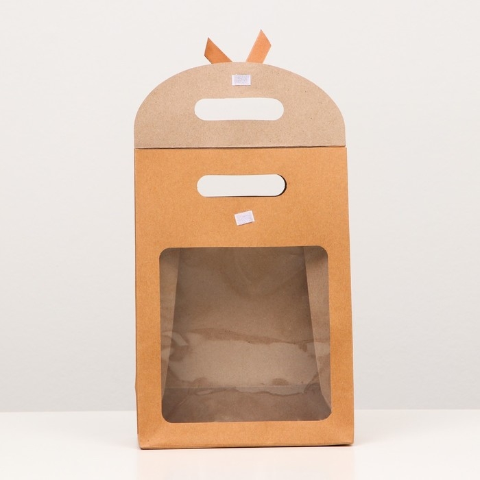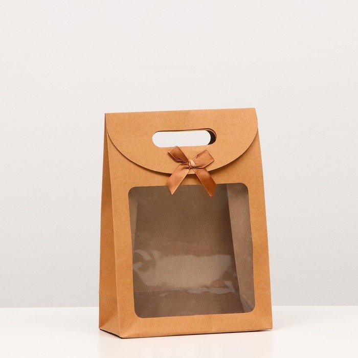 Коробка-пакет, крафтовая, с окном, 26 х 19 х 9 см