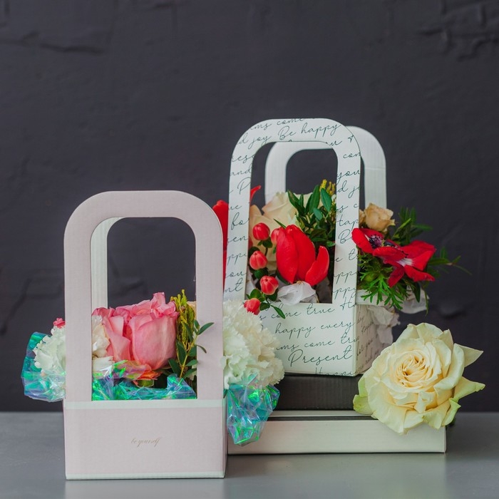 Коробка-переноска для цветов «Послание», 12 см × 12 см × 22 см
