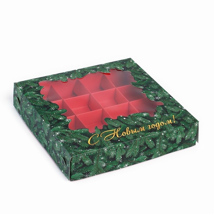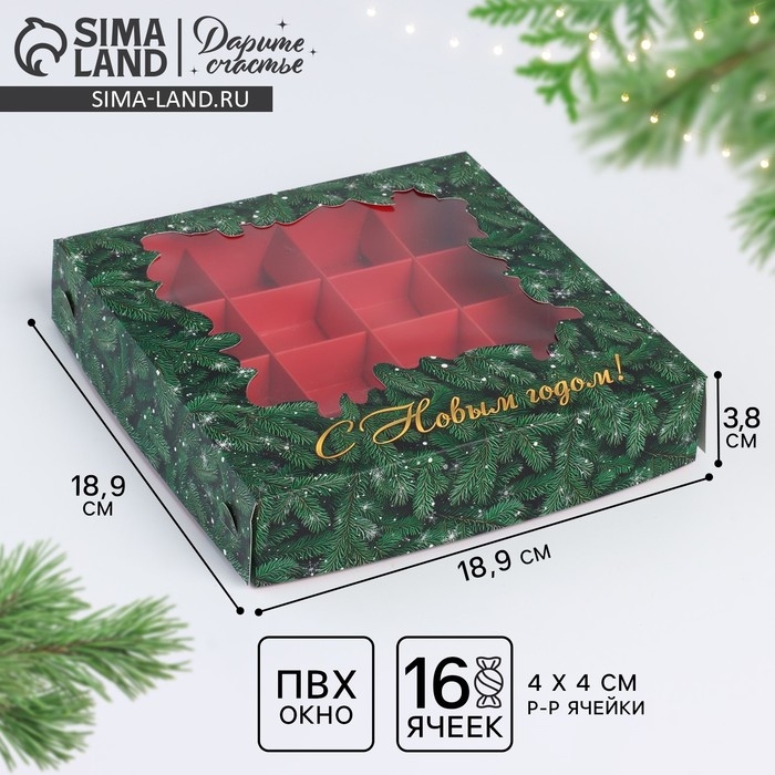 Коробка под 16 конфет «Еловый аромат», 18.9 х 18.9 х 3.8 см, Новый год
